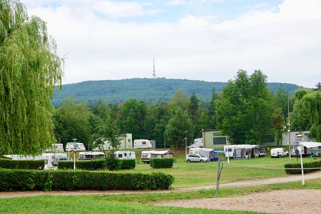 Teren jest dość nierówny, bo pole karavaningowe jest umiejscowione w takim padole 🙂 Dlatego sporo przyczep musiało podkładać wszelakie cegły i pustaki pod łapy, aby złapać równowagę.