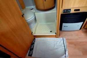 Jeśli wstaniesz w środku nocy, bo toaleta wzywa, to wstając z łóżka już prawdopodobnie kogoś obudzisz, bo przyczepa trzęsie się podczas chodzenia po niej, co odczuwa się szczególnie w nocy 🙂 A jak już uda się dotrzeć do przybytku nie budząc reszty, to można zakładać, że obudzi ich dalszy ciąg zdarzeń 🙂