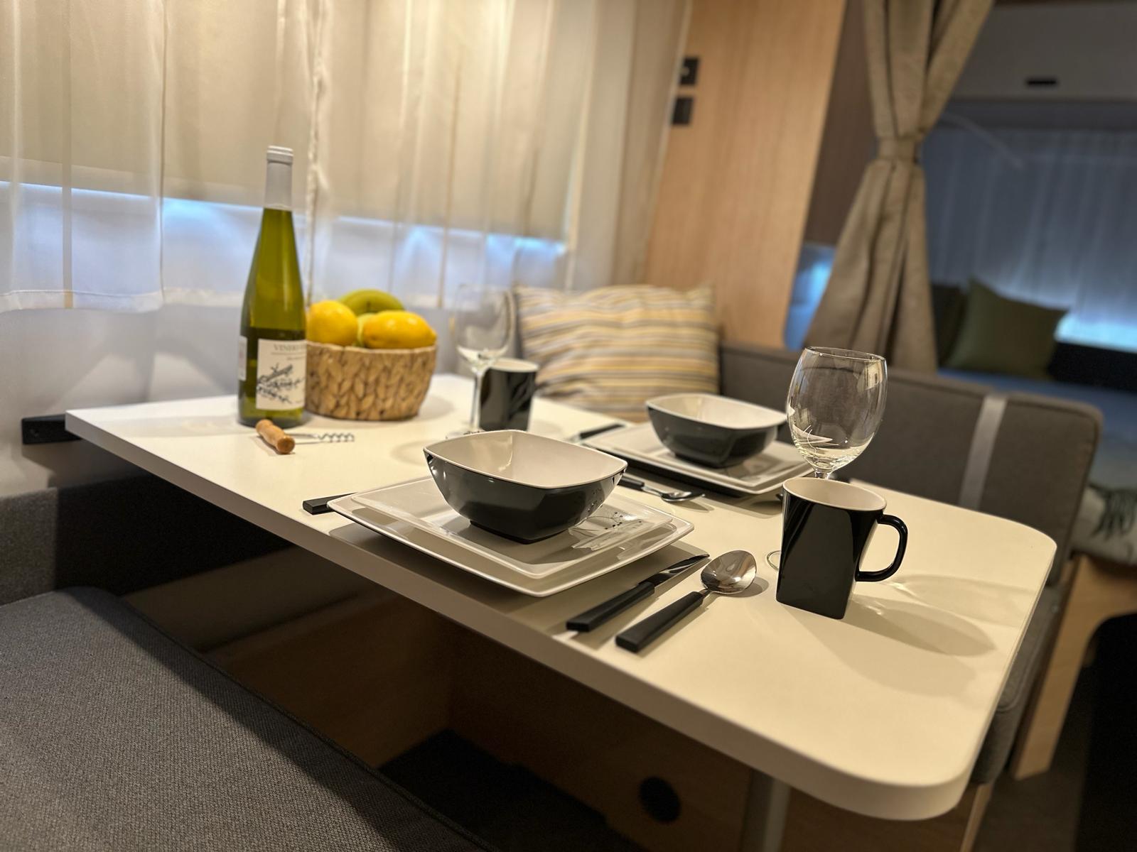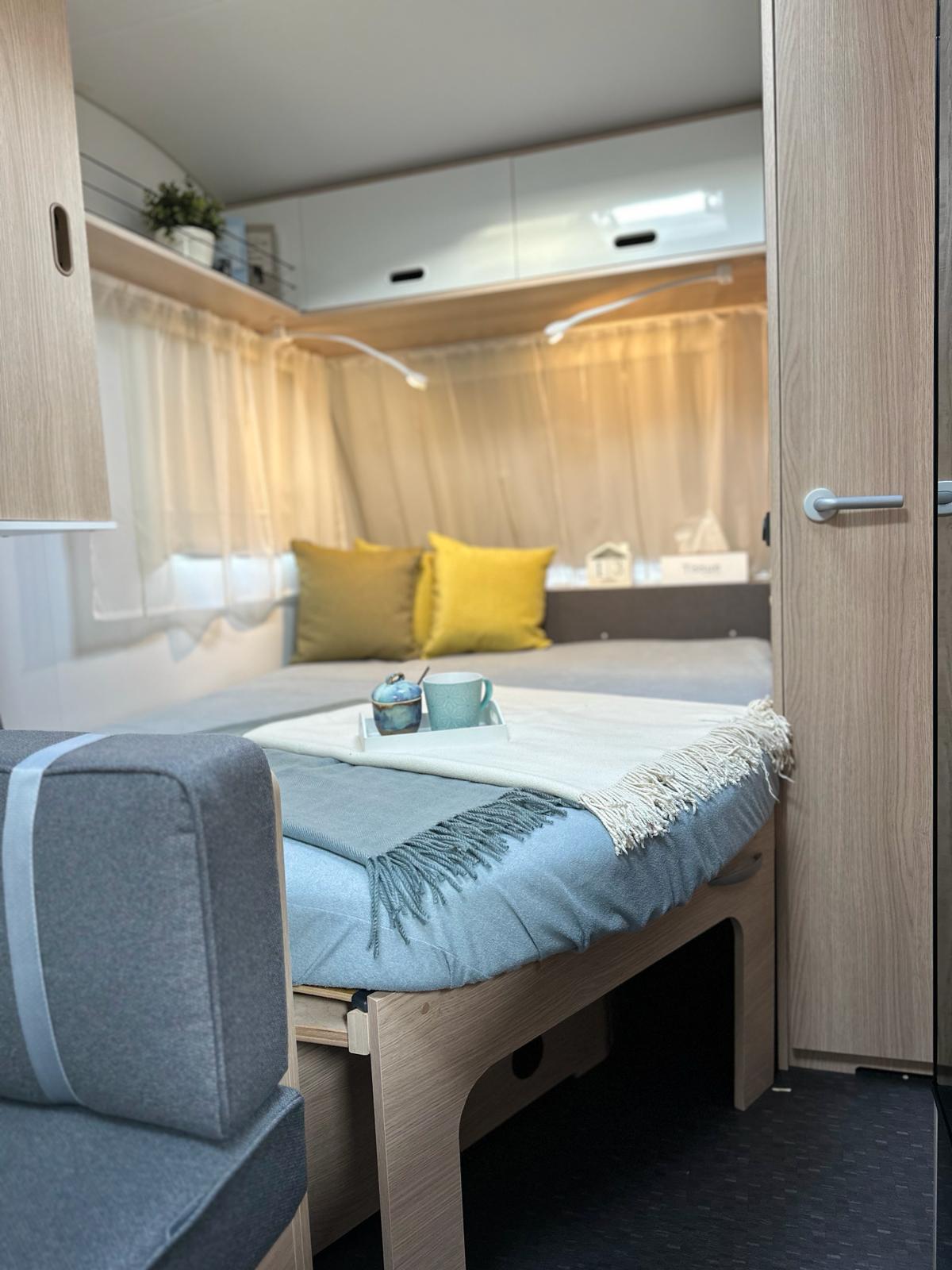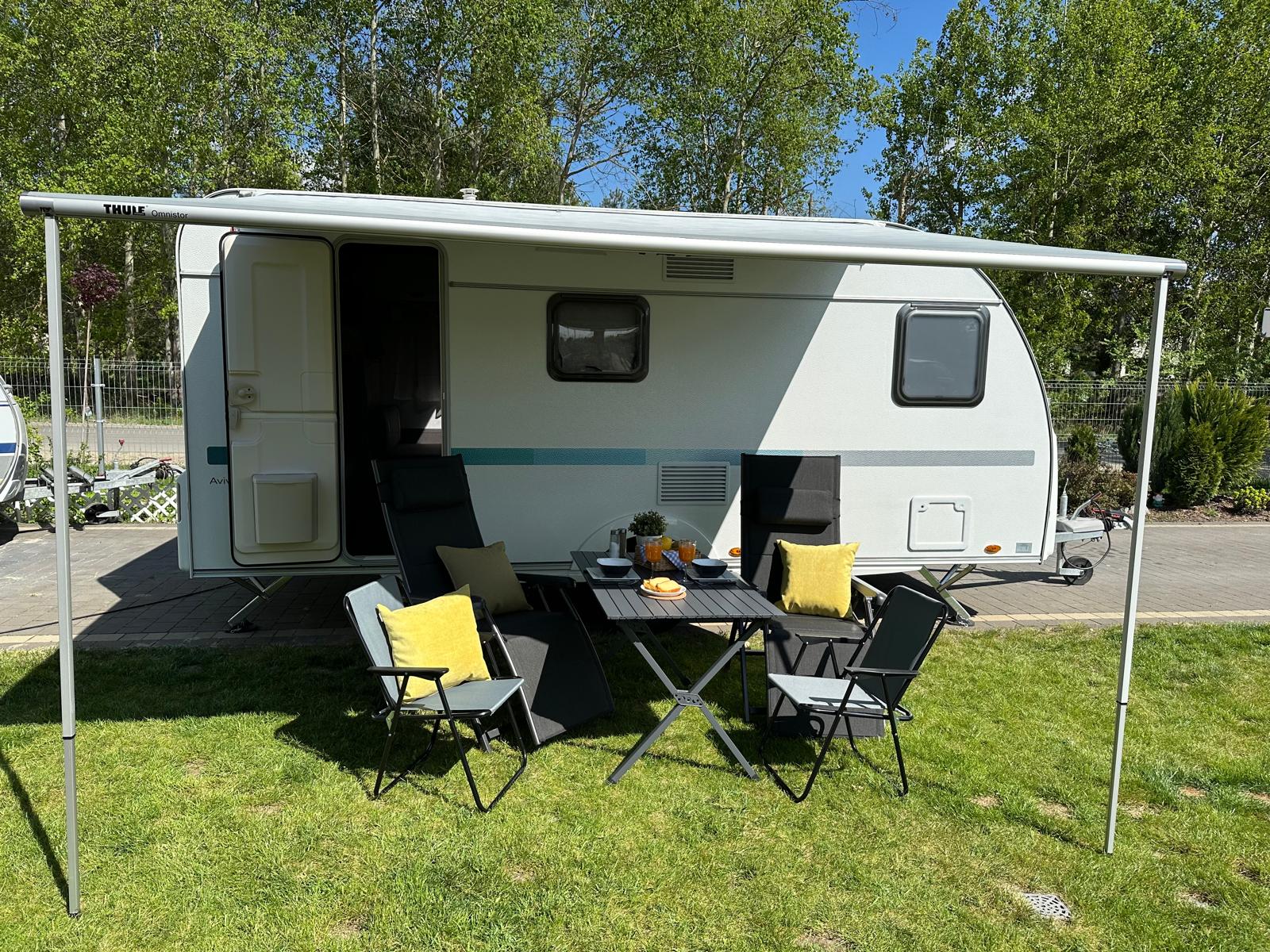 Na wynajem przyczepa kempingowa Adria Aviva 472 PK z klimatyzacją. Wyposażona jest w bagażnik rowerowy na dwa rowery. Przyczepa jest zgrabna, lekka, sprytnie zaprojektowana i komfortowo się ją prowadzi. Dobrze się sprawdza, jeśli wyjeżdżamy pierwszy raz z przyczepą.